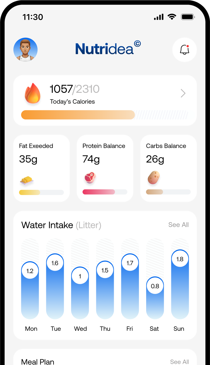 Before, I thought I was eating ‘healthy enough’ — but Nutridea showed me how imbalanced my meals actually were. Now, I track everything with zero hassle, and the app gently reminds me when I’m off track. After just one month, I sleep better, I’m more focused, and I’ve lost 5 pounds. It’s like I finally have a system that works for me.